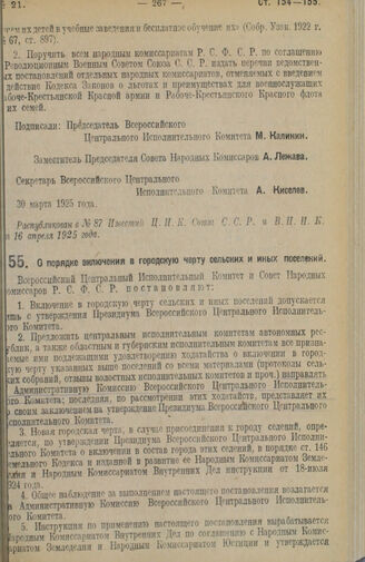 Декрет Всероссийского Центрального Исполнительного Комитета и Совета Народных Комиссаров. О порядке включения в городскую черту сельских и иных поселений. 30 марта 1925 г.