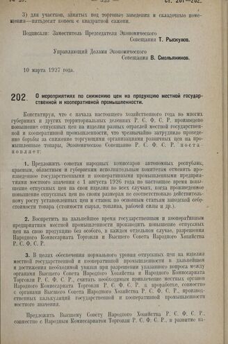 Постановление Экономического Совещания. О мероприятиях по снижению цен на продукцию местной государственной и кооперативной промышленности. 17 марта 1927 г. // Распубликовано в № 77 Известий Ц.И.К. Союза С.С.Р. и В.Ц.И.К. от 5 апреля 1927 г.