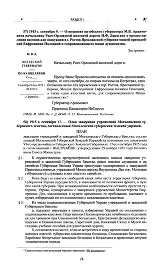 План эвакуации учреждений Могилевского губернского земства, составленный Могилевской губернской земской управой. 1915 г. сентября 17 // НИАБ. Ф. 2084. Оп. 1. Д. 68. Л. 1-2 об. Машинописный.
