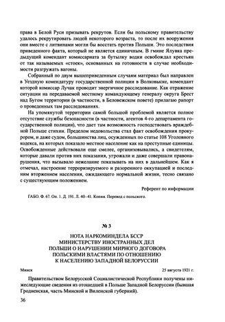 Нота Наркоминдела БССР министерству иностранных дел Польши о нарушении мирного договора польскими властями по отношению к населению Западной Белоруссии. Минск, 25 августа 1921 г.