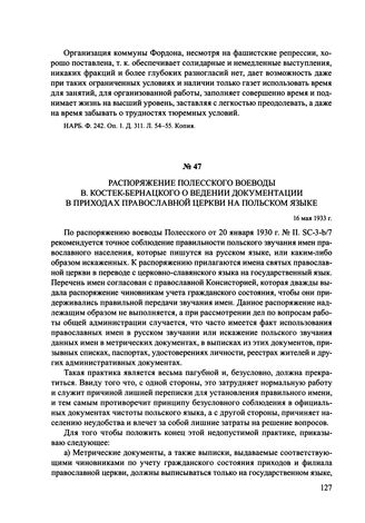 Распоряжение Полесского воеводы В. Костек-Бернацкого о ведении документации в приходах православной церкви только на польском языке. 16 мая 1933 г. // ГАБО. Ф. 1. Оп. 10. Д. 2355. Л. 23-24. Копия. Перевод с польского.