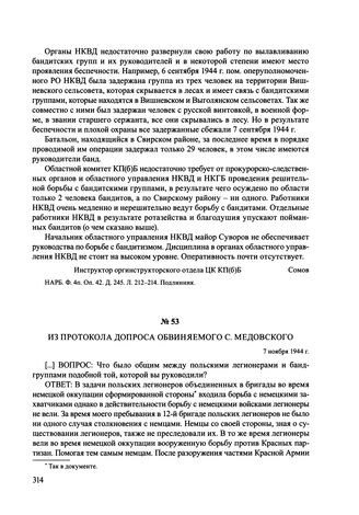 Из протокола допроса обвиняемого С. Медовского. 7 ноября 1944 г. // ЦА КГБ РБ. Д. 1382. Л. 169. Копия.