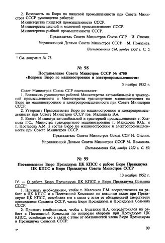 Постановления Совета Министров СССР, ноябрь 1952 г. С. 89.