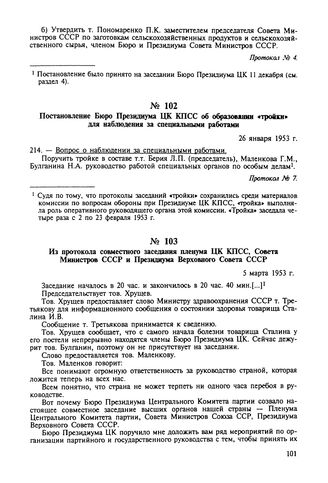 Из протокола совместного заседания пленума ЦК КПСС, Совета Министров СССР и Президиума Верховного Совета СССР. 5 марта 1953 г. // Источник. 1994. № 1. С. 107-111.
