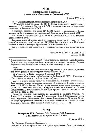Главная Серия «Документы советской истории» Политбюро ЦК ВКП(б) и Совет Министров СССР. 1945-1953 Постановление Политбюро о министре госбезопасности Грузинской ССР. ...