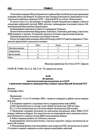 Из приказа заместителя министра внутренних дел СССР о проведении операции по ликвидации банд севернее города Шяуляй Литовской ССР. Вильнюс, 9 сентября 1946 г.