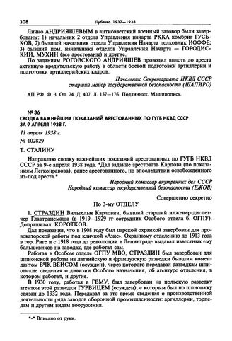Сводка важнейших показаний арестованных по ГУГБ НКВД СССР за 9 апреля 1938 г. 11 апреля 1938 г. // ЦА ФСБ России. Ф. 3. Оп. 5. Д. 845. Л. 130—145. Копия. Машинопись.