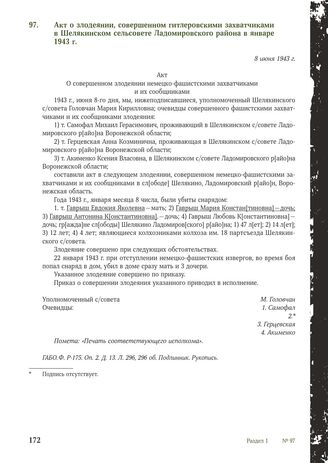 Акт о злодеянии, совершенном гитлеровскими захватчиками в Шелякинском сельсовете Ладомировского района в январе 1943 г. 8 июня 1943 г. [1]