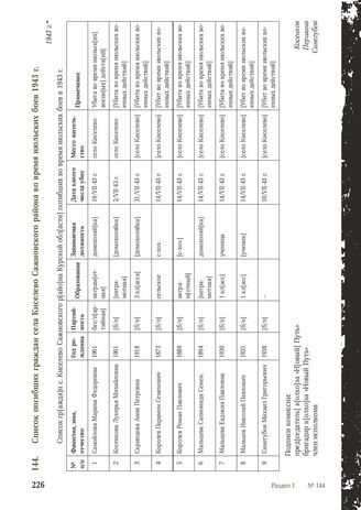 Список погибших граждан села Киселево Сажновского района во время и...