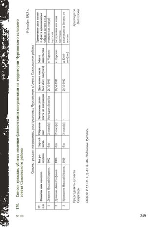 Список граждан, убитых немецко-фашистскими оккупантами на территории Чурсинского сельского совета Сажновского района. 6 декабря 1943 г.