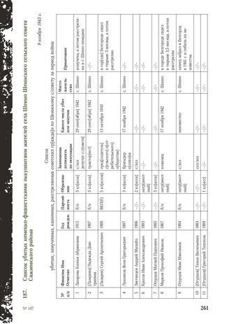 Список убитых немецко-фашистскими оккупантами жителей села Шеино Шеинского сельского совета Сажновского района. 9 ноября 1943 г. // ГАБО. Ф. P-61. Оп. 1. Д. 43. Л. 44. Подлинник. Рукопись.