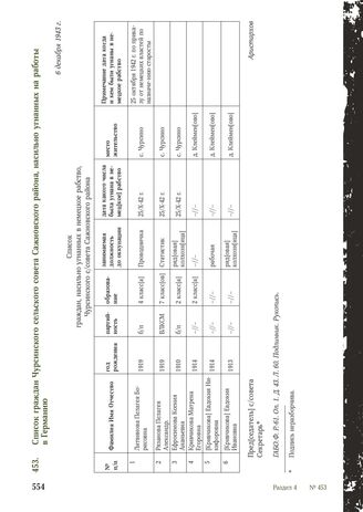 Список граждан Чурсинского сельского совета Сажновского района, насильно угнанных на работы в Германию. 6 декабря 1943 г. // ГАБО. Ф. P-61. Оп. 1. Д. 43. Л. 60. Подлинник. Рукопись.