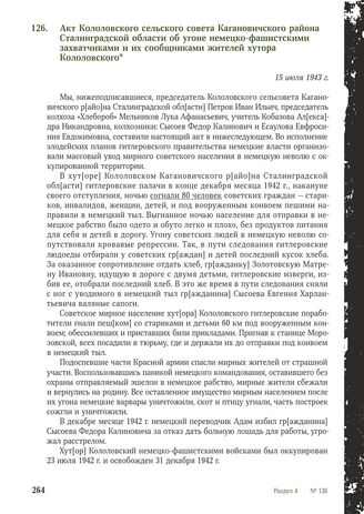 Главная Без срока давности Без срока давности: преступления нацистов и их пособников против ми... Документы Акт Кололовского сельского совета Кагановичского района Сталинградс...