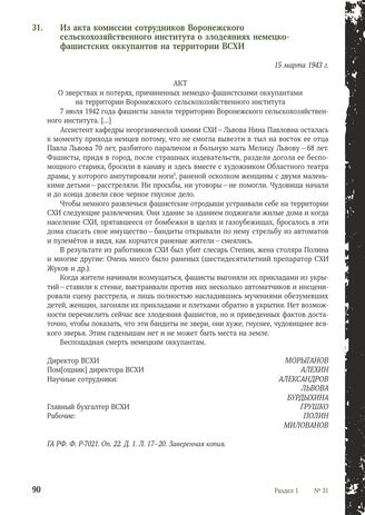 Из акта комиссии сотрудников Воронежского сельскохозяйственного института о злодеяниях немецко-фашистских оккупантов на территории ВСХИ. 15 марта 1943 г. // ГА РФ. Ф. Р-7021. Оп. 22. Д. 1. Л. 17-20. Заверенная копия.
