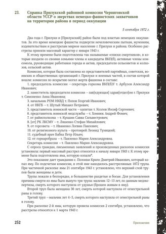 Справка Прилукской районной комиссии Черниговской области УССР о зверствах немецко-фашистских захватчиков на территории района в период оккупации. 5 сентября 1972 г. // ОА УФСБ России по г. Москве и Московской области. Заверенная копия. Машинопись.