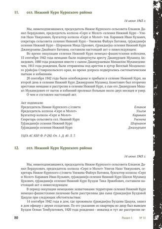 Акт Чрезвычайной государственной комиссии по установлению и расследованию злодеяний немецко-фашистских оккупантов и их сообщников. сел. Нижний Курп Курпского района. 14 июня 1943 г. [2] // УЦГА АС КБР. Ф. P-292. Oп. 1. Д. 40. Л. 8.