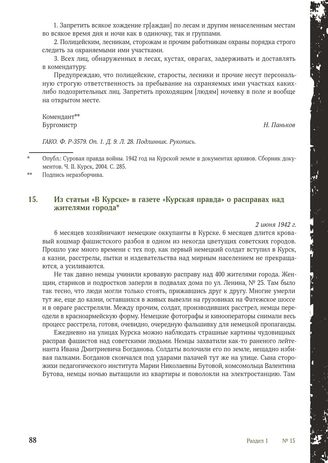 Из статьи «В Курске» в газете «Курская правда» о расправах над жителями города. 2 июня 1942 г. // Курская правда. 1942. 2 июня.