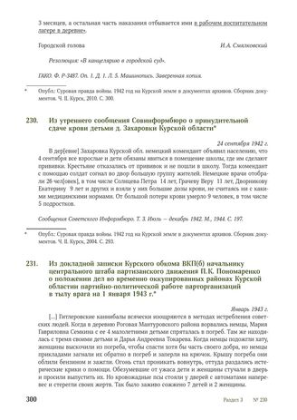Из утреннего сообщения Совинформбюро о принудительной сдаче крови детьми д. Захаровки Курской области. 24 сентября 1942 г. // Сообщения Советского Информбюро. Т. 3. Июль-декабрь 1942. М., 1944. С. 197.
