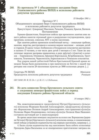 Из акта комиссии Петро-Круговского сельского совета о злодеяниях немецко-фашистских войск в период оккупации Елецкого района Орловской области. 14 января 1942 г. // ОКУ ГАЛО. Ф. P-2491. Оп. 1. Д. 9. Л. 17-19. Подлинник. Рукопись.