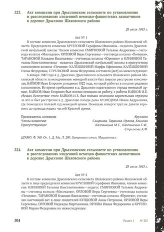 Акт комиссии при Дрызловском сельсовете по установлению и расследованию злодеяний немецко-фашистских захватчиков в деревне Дрызлово Шаховского района. 28 июля 1943 г. [1] // ЦГАМО. Ф. 548. Оп. 1. Д. 34а. Л. 200. Заверенная копия. Машинопись.
