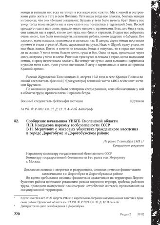Без срока давности: преступления нацистов и их пособников против мирного населения на временно оккупированной территории СССР в годы Великой Отечественной войны 1941-1945 гг.: Сб. док. в 2 ч. Ч. 1. — М.: Фонд «Связь Эпох», 2020.