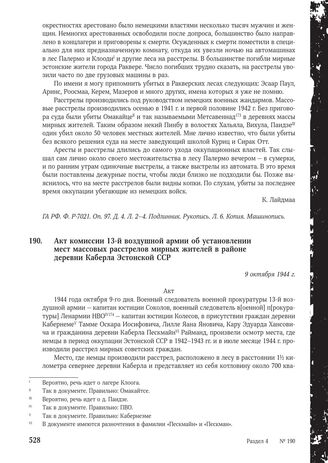Акт комиссии 13-й воздушной армии об установлении мест массовых расстрелов мирных жителей в районе деревни Каберла Эстонской ССР. 9 октября 1944 г.