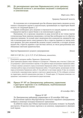 Из распоряжения пристава Нарышкинского уезда уряднику Радомской волости о доставлении сведений о коммунистах и комсомольцах. Март-июнь 1942 г.