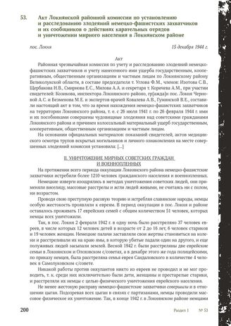 Акт Локнянской районной комиссии по установлению и расследованию злодеяний немецко-фашистских захватчиков и их сообщников о действиях карательных отрядов и уничтожении мирного населения в Локнянском районе. пос. Локня, 15 декабря 1944 г.