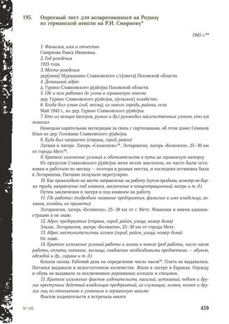 Главная Без срока давности Без срока давности: преступления нацистов и их пособников против ми... Документы Опросный лист для возвратившихся на Родину из германской неволи на ...