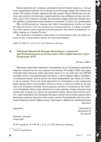 Без срока давности: преступления нацистов и их пособников против мирного населения на оккупированной территории РСФСР в годы Великой Отечественной войны. Республика Калмыкия: Сб. арх. док. — М.: Фонд «Связь Эпох»; Икс-Хистори, 2020.