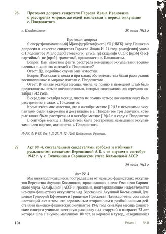 Протокол допроса свидетеля Гарьева Ивана Ивановича о расстрелах мирных жителей нацистами в период оккупации с. Плодовитого. с. Плодовитое, 28 июня 1943 г.