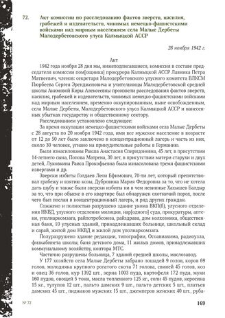 Акт комиссии по расследованию фактов зверств, насилия, грабежей и издевательств, чинимых немецко-фашистскими войсками над мирным населением села Малые Дербеты Малодербетовского улуса Калмыцкой АССР. 28 ноября 1942 г.