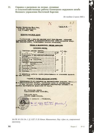 Справка о расценках на лесные, сплавные и сельскохозяйственные работы Олонецкого окружного штаба Военного управления Восточной Карелии. Не позднее 2 июля 1943 г. // НА РК. Ф. П-8. Оп. 1. Д. 1127. Л. 23. Копия. Машинопись. Пер. с фин. яз., современный оригиналу.
