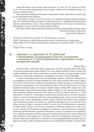 Заявление З.А. Королевой и К.М. Субботиной в Чрезвычайную государственную комиссию о нахождении в концлагере № 3 города Петрозаводска и организации в лагере медицинской помощи. [Июль] 1944 г.
