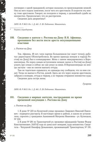 Без срока давности: преступления нацистов и их пособников против мирного населения на оккупированной территории РСФСР в годы Великой Отечественной войны. Ростовская область: Сб. док. — М.: Фонд «Связь Эпох»; Изд-во «Кучково поле», 2020.
