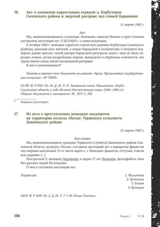 Акт о сожжении карательным отрядом д. Корбутовки Сычевского района и зверской расправе над семьей Барановых. 11 марта 1943 г.
