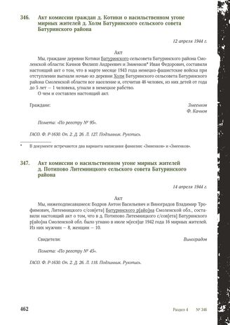 Акт комиссии граждан д. Котики о насильственном угоне мирных жителей д. Холм Батуринского сельского совета Батуринского района. 12 апреля 1944 г.