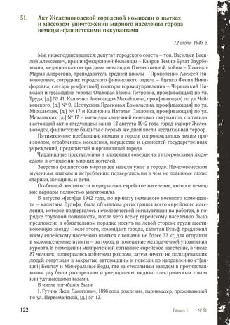 Акт Железноводской городской комиссии о пытках и массовом уничтожении мирного населения города немецко-фашистскими оккупантами. 12 июля 1943 г.