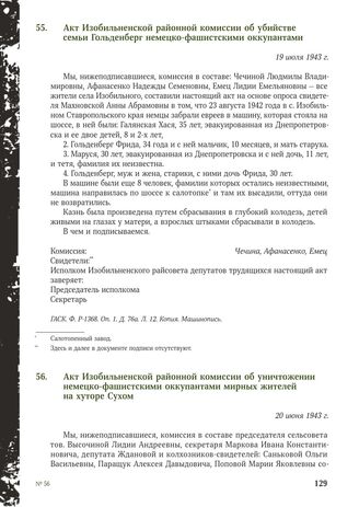 Без срока давности: преступления нацистов и их пособников против мирного населения на оккупированной территории РСФСР в годы Великой Отечественной войны. Ставропольский край: Сб. арх. док. — М.: Фонд «Связь Эпох»; Икс-Хистори, 2020.