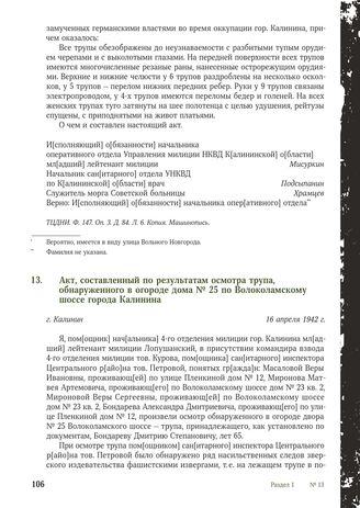 Акт, составленный по результатам осмотра трупа, обнаруженного в огороде дома № 25 по Волоколамскому шоссе города Калинина. Г. Калинин, 16 апреля 1942 г.