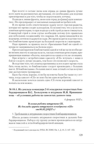 Из доклада командира 2-й эскадрильи скоростных бомбардировщиков В.С. Хользунова и штурмана И.Я. Прянишникова - об условиях работы на самолетах данного типа. 6 февраля 1937 г. // РГВА. Ф. 35082. Оп. 1. Д. 316. Л. 1-83. Машинописный экз. с заверительной подписью. № 18.4. (Л. 14-17).
