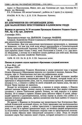 Из документов по организации дома для малолетних преступников в Клинском уезде. Выписка из протокола № 39 заседания Президиума Клинского Уездного Совета Раб., Кр. и Кр.-арм. Депутатов. 3 сентября 1919 г. // ГАРФ. Ф. 1235. Оп. 56. Д. 30. Л. 238. Заверенная копия.