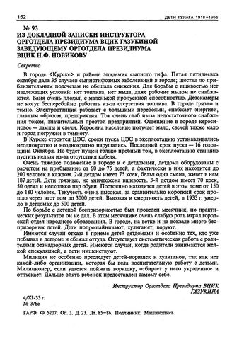 Главная Серия «Россия. XX век. Документы» Дети ГУЛАГа. 1918-1956 Из докладной записки инструктора орготдела Президиума ВЦИК Газукино...