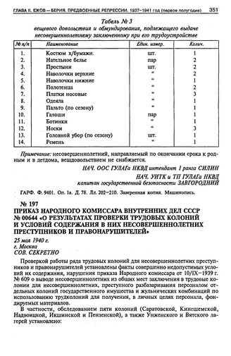 Приказ Народного Комиссара Внутренних Дел СССР № 00644 «О результатах проверки трудовых колоний и условий содержания в них несовершеннолетних преступников и правонарушителей». 25 мая 1940 г.