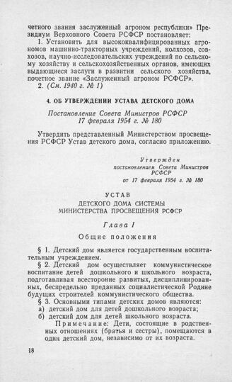 Об утверждении устава детского дома. Постановление Совета Министров РСФСР 17 февраля 1954 г. № 180