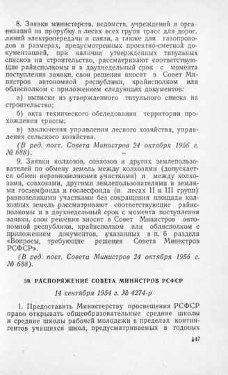 Распоряжение Совета Министров РСФСР 14 сентября 1954 г. № 4274-р