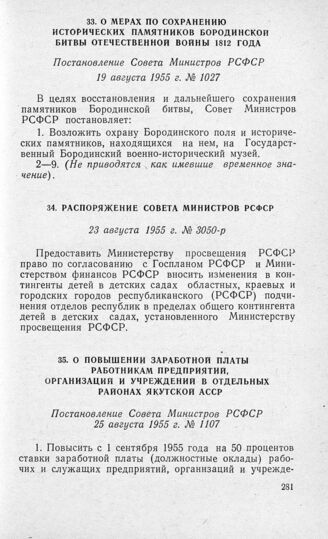 Распоряжение Совета Министров РСФСР 23 августа 1955 г. № 3050-р