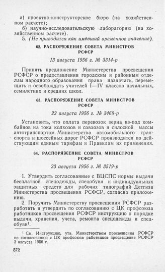 Распоряжение Совета Министров РСФСР 13 августа 1956 г. № 3314-р