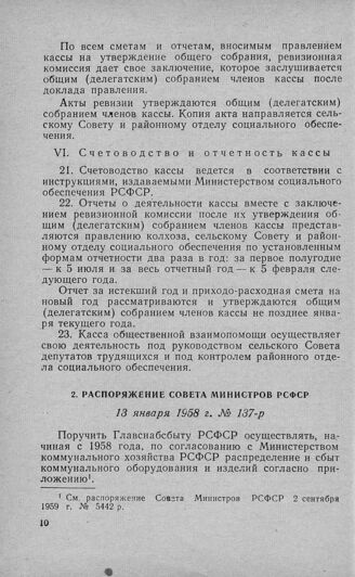Распоряжение Совета Министров РСФСР 13 января 1958 г. № 137-р