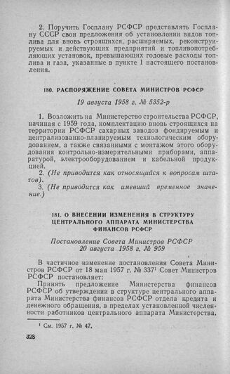 Органы государственного управления РСФСР -- Законы, указы и постановления 1958 г.